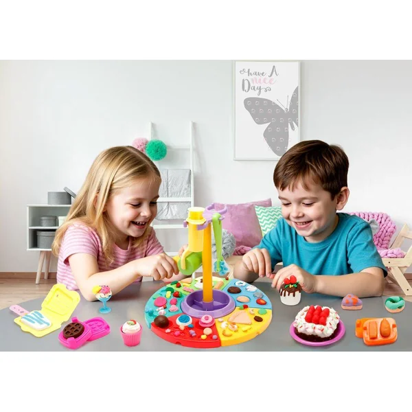 28 pièces. Crée des plats fabuleux avec la pâte à modeler. Comme dans un vrai restaurant. Assortiment de moules et d’ustensiles inclus. 6 couleurs différentes de pâte à modeler. Contenu : 6 pots de pâte à modeler de 55 g, 1 restaurant multi-activités, 1 rouleau, 1 pressoir, 1 couteau à pizza, 1 extrudeuse avec 2 bâtons, 1 moule à glace avec 2 bâtons, 2 coupes à glace, 2 outils, 1 moule à gâteau, 1 cuillère, 1 pelle, 1 plat, 4 moules à aliments, 1 verre à cola avec paille et 3 boîtes à papier. Développement de la créativité. Amusant et facile à utiliser. Dimensions du restaurant multi-activités : 26.5 x 26.5 x 21.5 cm.