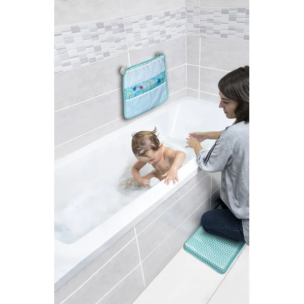 Un accessoire incontournable pour profiter pleinement du bain de bébé ! Son épaisseur de 4 cm offre un grand confort et soulage les genoux des parents pendant la durée du bain. Il est doté de 2 activités suspendues pour le plus grand plaisir de bébé. Pratique : les 2 poches à l’extérieur permettent d’avoir tout le nécessaire à proximité. Malin : sa base antidérapante garantie plus de stabilité aux parents.
