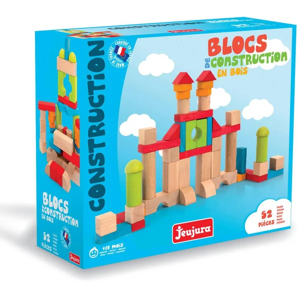 Construire – Blocs de Construction – 52 pièces en bois : Jeu de construction de 52 pièces en hêtre massif dans une valisette de rangement pratique, pour réaliser de nombreuses constructions toutes les plus créatives et imaginatives les unes que les autres. Valisette 26 x 24 x 9 cm.