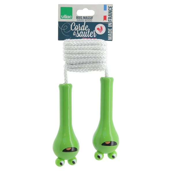 Fabriquée dans nos ateliers du Jura, cette jolie corde à sauter met à l’honneur Babeth la rainette, la plus vive et joyeuse de la collection Boizoos.