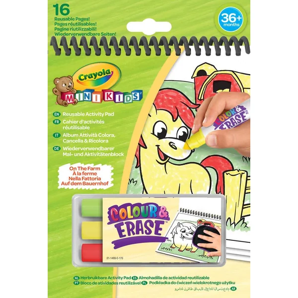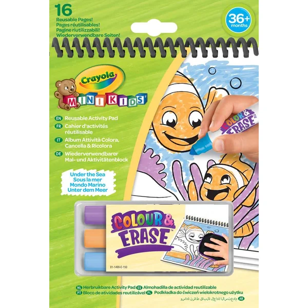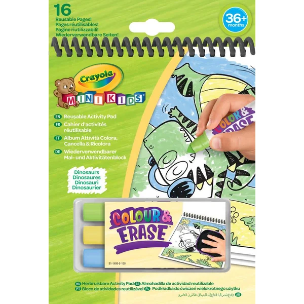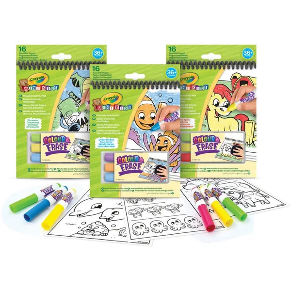 Un assortiment de cahier d’activités Colour Pop! associant le plaisir du coloriage avec la sérénité du sans dégât. Chaque cahier contient 8 pages réutilisables recto-verso sur lesquels l’enfant peut créer avec les feutres lavables puis effacer avec le chiffon humide. 3 thèmes disponibles: Dinosaures, Ferme et Mer.