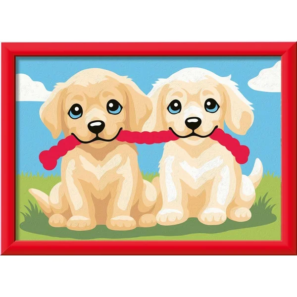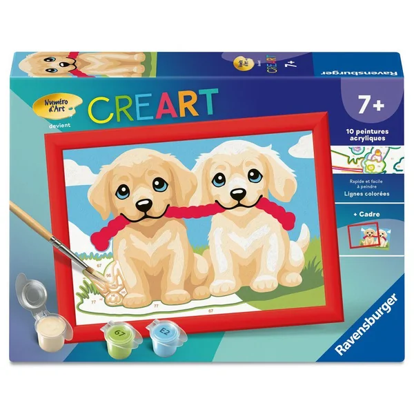 C’est facile, beau et amusant de peindre par numéro grâce aux lignes colorées pré-peintes ! Parmi les visuels petits formats à peindre et à accrocher, ces petits chiens joueurs sauront ravir les enfants et compléter leurs collections. A partir de 7 ans. Ce produit est composé de matériaux issus de forêts bien gérées certifiées FSC®, de matériaux recyclés et de matériaux issus d’autres sources contrôlées (FSC-C111262).