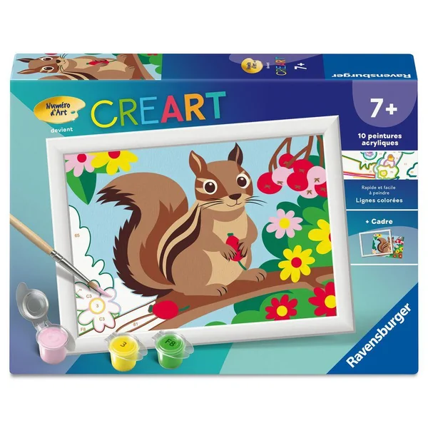 C’est facile, beau et amusant de peindre par numéro grâce aux lignes colorées pré-peintes ! Parmi les visuels petits formats à peindre et à accrocher, ce petit Chipmunk saura ravir les enfants et compléter leurs collections. A partir de 7 ans. Ce produit est composé de matériaux issus de forêts bien gérées certifiées FSC®, de matériaux recyclés et de matériaux issus d’autres sources contrôlées (FSC-C111262).