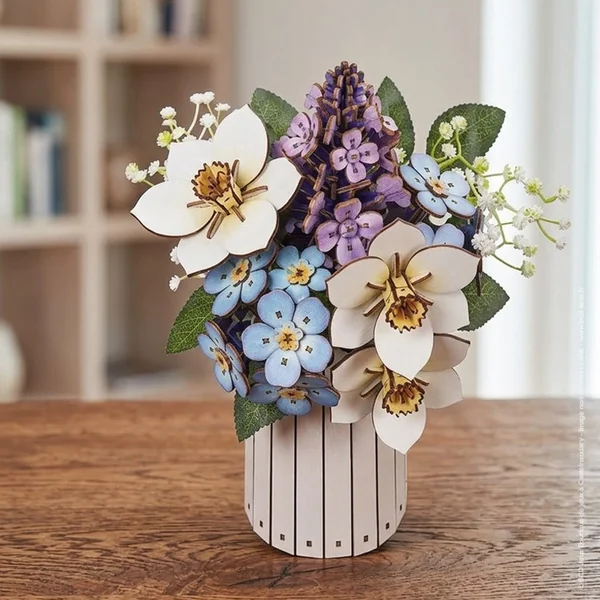 Plus qu’un simple look : Grâce à l’anneau parfumé intégré, le modèle dégage non seulement un charme visuel, mais aussi un parfum agréable – comme un véritable bouquet. - Agencement complet : Vous n’avez pas besoin de chercher un vase approprié : un vase élégant (également facile à assembler) fait partie de l’ensemble et complète l’ensemble.