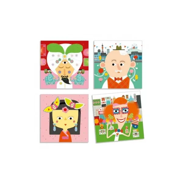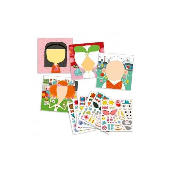 Djeco vous propose de créer avec des stickers, votre enfant va réaliser de jolis tableaux représentant des visages tous différents des plus farfelus au plus sérieux. Une activité créative pour les enfants de 3 à 6 ans.