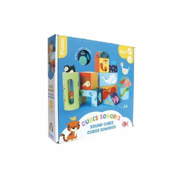 Découvrez les Cubes sonores de Auzou, un coffret d’éveil pour les enfants à partir de 1 an. Des cubes sonores pour éveiller le sens auditif de bébé en les manipulant et en les empilant.