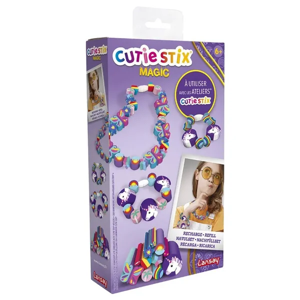 Continue de créer des bijoux Cutie Stix avec les recharges de stix sur des thèmes tendances : Happy, Cool, Magic et Pop.