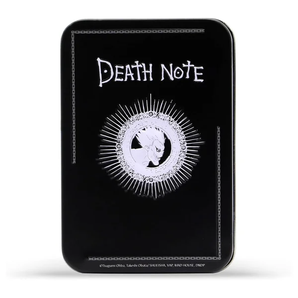 Livré dans une élégante boîte en métal embossée, ce jeu de cartes est un véritable objet de collection pour les passionnés de Death Note. Son design soigné et son format compact en font un accessoire facile à transporter et à ranger, tout en protégeant vos cartes pour une longévité maximale.