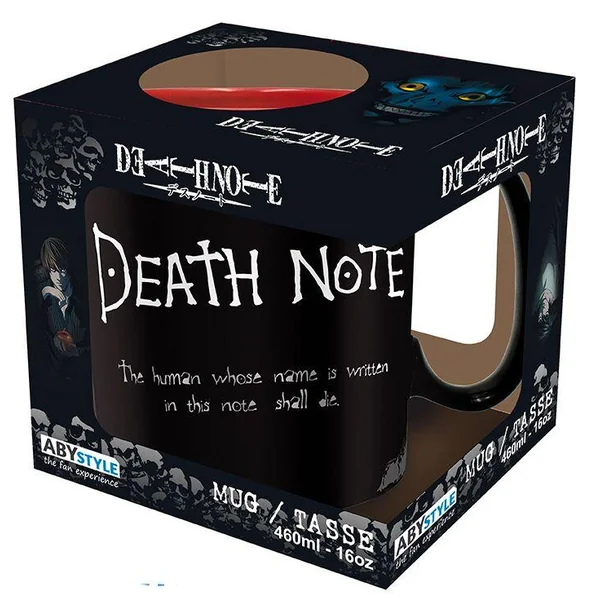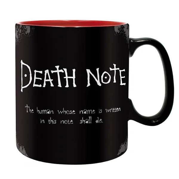 Le Death Note, ce cahier qui permet aux simples mortels de se faire justice grâce aux pouvoirs des Dieux de la Mort… Vous aussi pouvez narguer L en lui donnant des indices, en buvant dans ce glorieux mug Death Note à l’effigie de l’icônique cahier par ABYstyle !