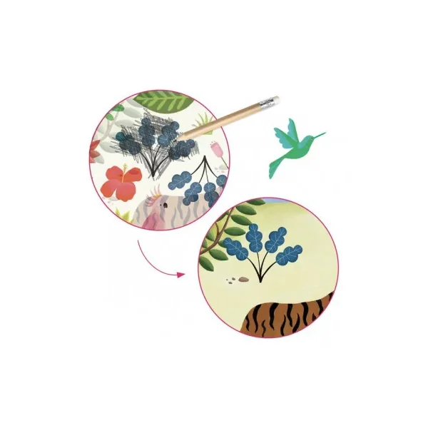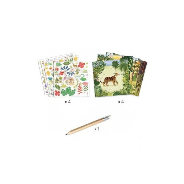 Découvrez la pochette Décalcomanies Candides de la collection Inspired by de Djeco, un loisir créatif ludique et original pour les enfants dès 5 ans. Une activité de décalcomanies avec 4 tableaux à réaliser pour découvrir le style du Douanier Rousseau, le célèbre peintre français grand maître de l’art naïf.