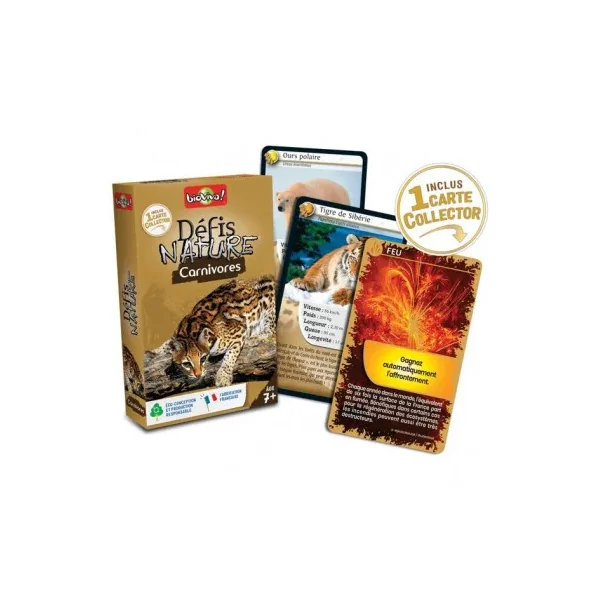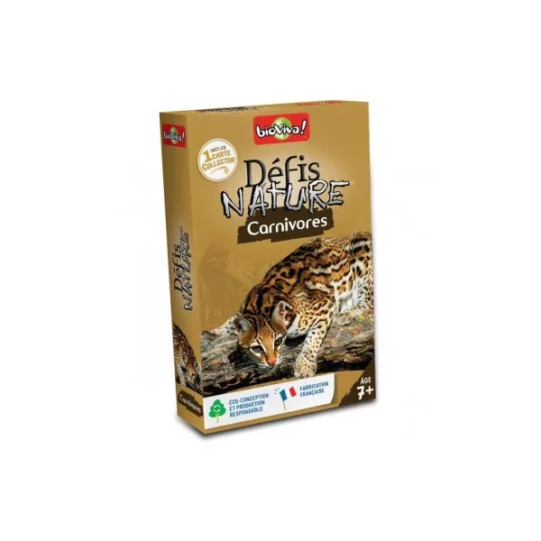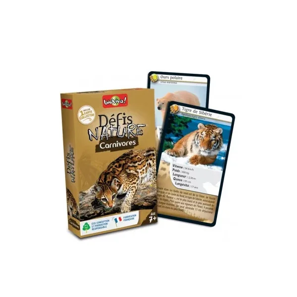 Découvrez le jeu Défis nature carnivores de Bioviva, un jeu de carte éducatif qui vous emmène à la rencontre des animaux carnivores de la planète.