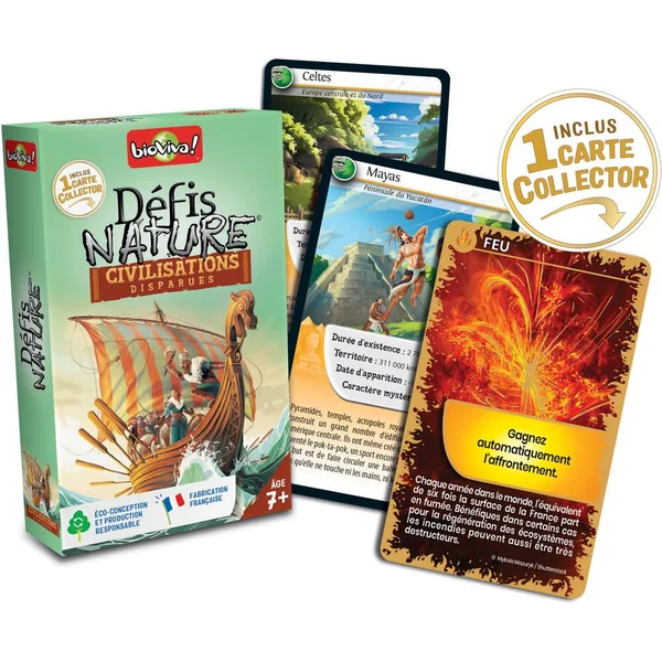 Défis Nature vous emmène à la découverte des civilisations disparues du monde entier. Pariez sur les points forts de ces peuples pour collecter toutes les cartes du jeu et remporter la partie. Alors, prêts à relever le défi ?