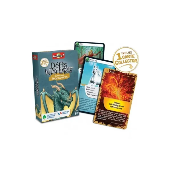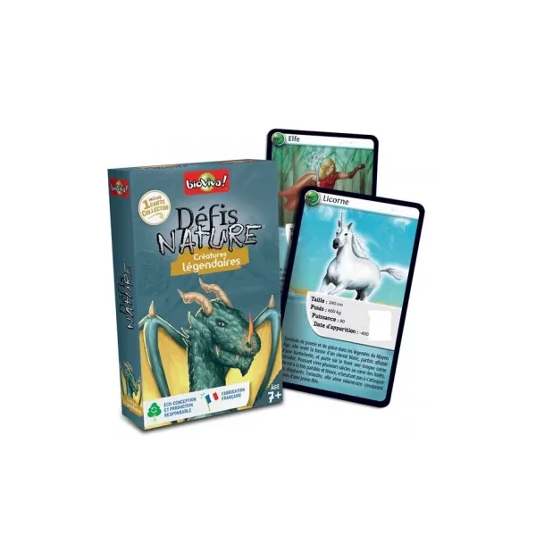 Découvrez le jeu Défis nature créatures légendaires de Bioviva, un jeu de carte éducatif qui vous emmène à la rencontre des créatures légendaires les plus incroyables.