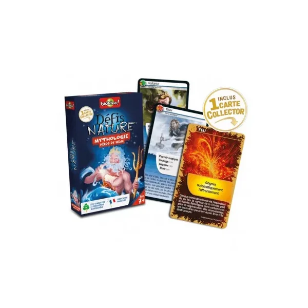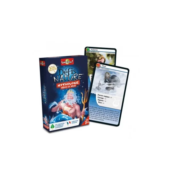 Découvrez Défis nature Mythologie, héros et dieux de Bioviva, un jeu de cartes éducatif à partir de 7 ans, qui vous emmène à la rencontre des personnages emblématiques de la Mythologie. Pariez sur leurs points forts pour collecter toutes les cartes du jeu et remporter la partie.