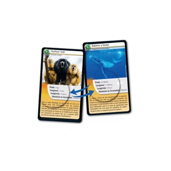 Découvrez les espèces à préserver, puis pariez sur les points forts de vos animaux pour collecter toutes les cartes du jeu et remporter la partie.