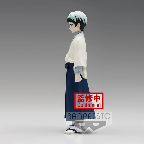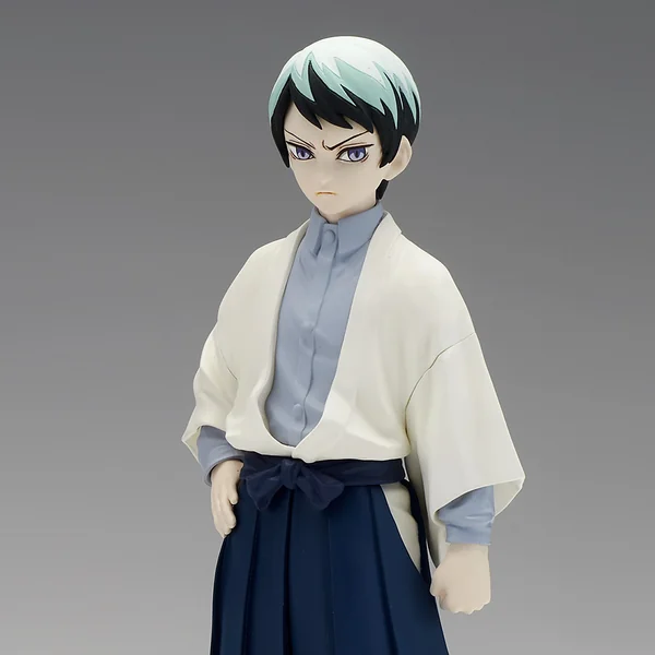 La tenue traditionnelle est très lisible : haut clair ample, hakama bleu profond, ceinture nouée, et sandales japonaises qui complètent la silhouette. Les plis du vêtement donnent un joli rendu “tissu”, et les nuances de bleu apportent de la profondeur. Les cheveux courts sombres avec reflets, et l’expression du visage rendent Yushiro immédiatement reconnaissable. Une figurine Demon Slayer idéale pour une vitrine qui veut aussi mettre en avant les personnages “stratégiques”, pas seulement les combattants.
