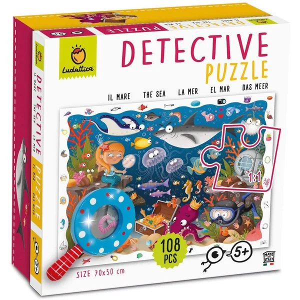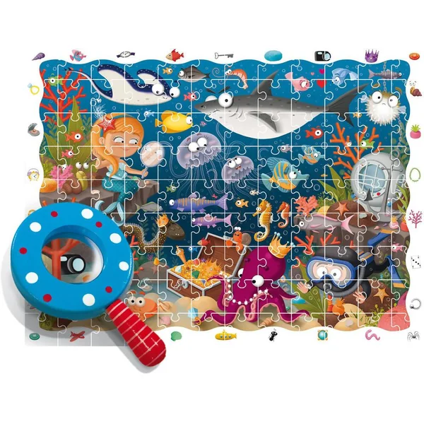 Découvrez le détective puzzle – Le monde sous marin, un jeu captivant qui combine l’amusement du puzzle avec l’excitation d’une aventure de détective. Ce puzzle de 108 pièces, conçu pour les enfants dès 5 ans, plonge les jeunes joueurs dans un monde sous-marin fascinant. Une fois les pièces assemblées, le plaisir continue avec une activité de recherche d’objets cachés à l’aide de la loupe en bois incluse.