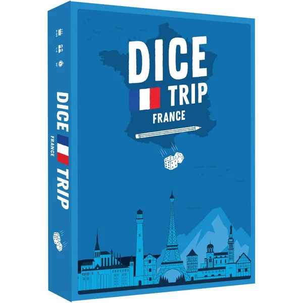 Qui réussira à faire le plus long voyage en France ? BUT DU JEU : Créer la plus longue route possible à travers la France MECANIQUE DU JEU : Vaut-il mieux éviter Paris ou rayer Orléans de la carte ? Dans Dice Trip, le choix ne dépendrapas des choses à voir dans la ville, mais du résultat de vos lancers de dés. Commencez votrevoyage et combinez au mieux les dés pour créer la plus longue route possible à travers la France.Comme lors d’un départ en voyage, observation, planification et réflexion seront vos meilleursalliés dans ce roll and write au design soigné.