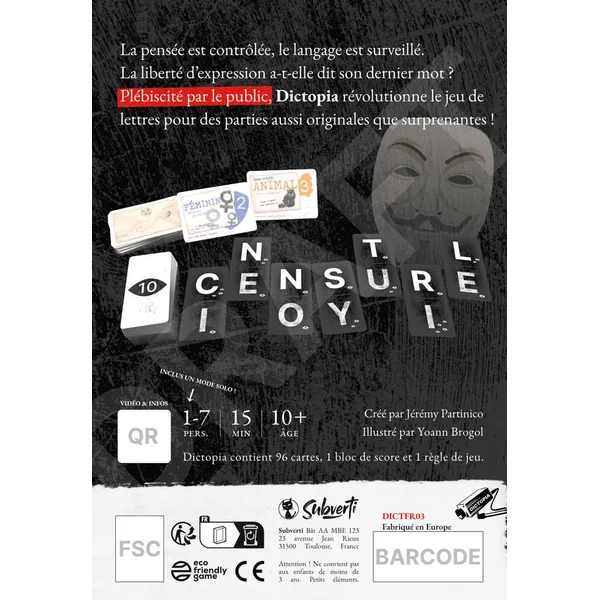 Rapide et tactique, Dictopia révolutionne le jeu de lettres. Prouvez votre capacité à échapper à la censure et tentez de rejoindre la Résistance en passant cinq épreuves d’une minute et trente secondes pendant lesquelles tout le monde joue en même temps.