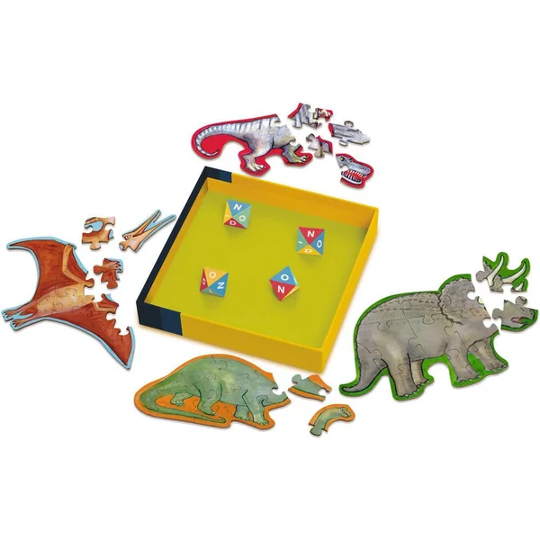 4 lancers pour réussir à écrire DINO avec ces drôles de dés à huit faces et construire son puzzle dinosaure. Un premier jeu de dés accessible aux plus jeunes et pour toute la famille.