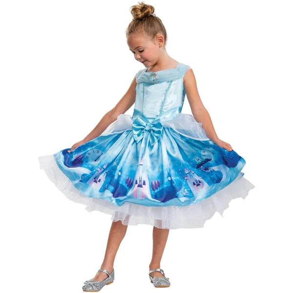 Déguisement Disney Princesses, Cendrillon Prestige Story Telling. Pour enfant. Taille : 5-6 ans. Profite de cette prestigieuse robe sur laquelle est retracée l’histoire de Cendrillon, avant que ne sonne minuit ! Panoplie en satin bleu – le haut du bustier à bretelles larges est surmonté d’un tulle pailleté argent et d’un camée à l’effigie de la princesse. A la ceinture, gros nœud 3D en satin bleu et 2 basques blancs retombant sur la jupe. Le bas de la jupe présente les éléments essentiels de l’histoire imprimés en dégradé. Un jupon en tulle blanc pailleté dépasse de la jupe et donne l’effet robe de bal. Chaussures non fournies. Existe aussi en taille 7-8 ans référence 41107879.