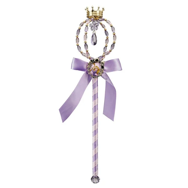 Baguette Disney Princesses Raiponce. Taille unique. Baguette magique en plastique recouverte de tissu mauve et surmontée d’une composition en perles transparentes, d’un faux diamant et d’une mini couronne dorée. Un joli nœud en tissu mauve, un camée de Raiponce en son centre ainsi qu’une perle transparente au bout de la baguette embellissent ce produit. Matière : plastique.