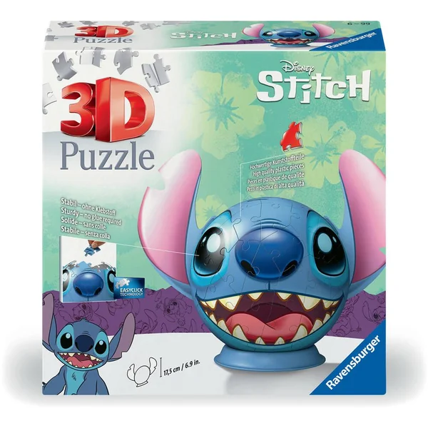 Un puzzle 3D rond aux couleurs du célèbre personnage Stitch de l’univers Disney facile à assembler grâce à ses 72 pièces numérotées. Toutes les pièces s’emboitent parfaitement et une fois monté, le puzzle 3D reste bien stable, sans avoir besoin d’être collé. Ce puzzle offrira aux filles comme aux garcons dès 6 ans une expérience de puzzle ludique et originale dans l’univers de leurs héros favoris. Assemblez cette superbe reproduction en puzzle 3D de la tête du célèbre Stitch et plongez dans le monde fantastique de Disney ! Fabriqué en Europe, ce puzzle est composé de matériaux issus de forêts bien gérées certifiées FSC, de matériaux recyclés et de matériaux issus d’autres sources contrôlées (FSC-C111262 , FSC : organisme à but non lucratif qui protège, contrôle et encourage la gestion durable des forêts).