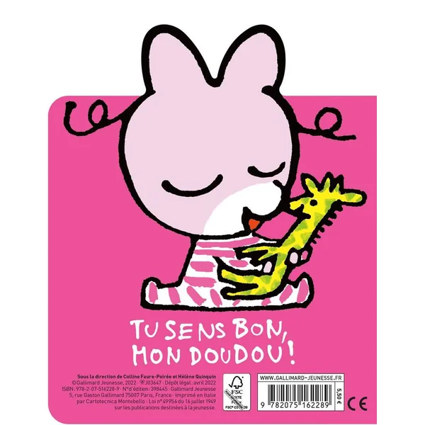Bébé zaza est toute triste, une grosse larme coule sur sa joue. Elle veut Fafa son doudou, tout de suite. Elle ne la trouve pas, où est donc passée Fafa? Mais qui arrive enfin? Sa Fafa chérie, toute propre, toute douce et en plus elle sent très, très bon ! Plus de pleurs, que du bonheur ! Un livre doudou pour les moments câlins.