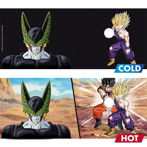 Revivez l’affrontement épique contre avec ce mug thermoréactif Dragon Ball Z par ! Ce mug met en scène le moment légendaire où vient en aide à son fils pour exécuter le célèbre Kamehameha père-fils. Chaque gorgée de votre boisson chaude déclenche un changement d’aspect spectaculaire, révélant cette scène iconique de !