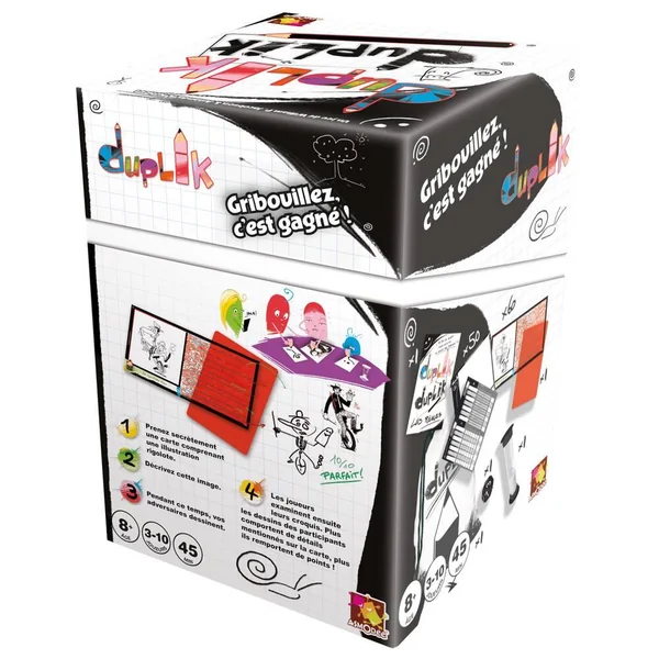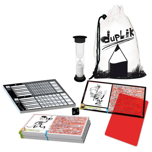 Nouveau : Un joueur décrit une illustration rigolote à ses camarades qui dessinent cette image le temps d’un sablier. le maître d’œuvre », décrit une illustration rigolote à ses camarades qui tentent de reproduire cette image le temps d’un sablier. Seuls les dessins comprenant certains détails prédéfinis remporteront des points. A partir de 8 ans. Nombre de joueurs : 3 joueurs et plus. Durée de jeu : 45 minutes.