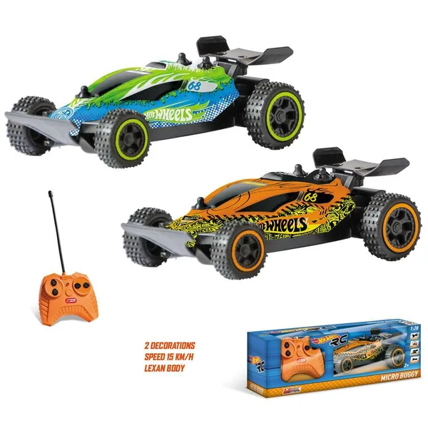 Buggy radio commandé, aux couleurs de Hot Wheels. Rapide, réactif et équipé de 4 pneux crantés, il est idéal aussi bien en intérieur qu’en extérieur. Echelle : 1/28ème. Commande toutes directions : avant, arrière, gauche et droite. Vitesse : 15 km/h. 2 fréquences. Carrosserie : Lexan body. + 2 coloris assortis.