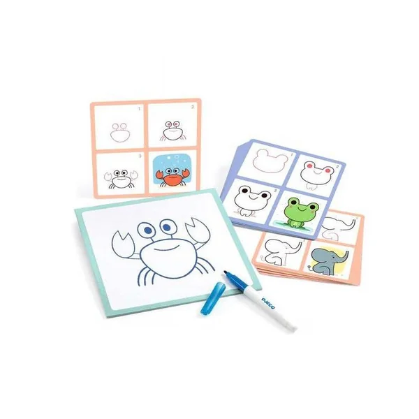 Apprendre à dessiner des bébés animaux grâce à cette activité pas à pas ! Des cartes modèle pour guider l’enfant à chaque étape du dessin. Il recommence autant de fois qu’il le souhaite avec le feutre effaçable. Une activité pour apprendre à dessiner en s’amusant.