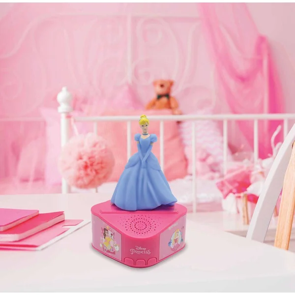 Enceinte Bluetooth avec figurine Cendrillon La figurine s’éclaire avec le rythme de la musique ! Un super design Disney princesses pour écouter de la musique Différents ports de connexion : port USB pour la lecture de disques USB MP3, port de type C pour le chargement de la batterie.