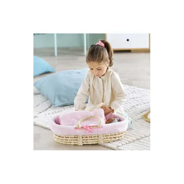 Découvrez l’ensemble couffin peluche rose de Corolle, un magnifique couffin tressé permettant d’accueillir un poupon de 36 à 42 cm.