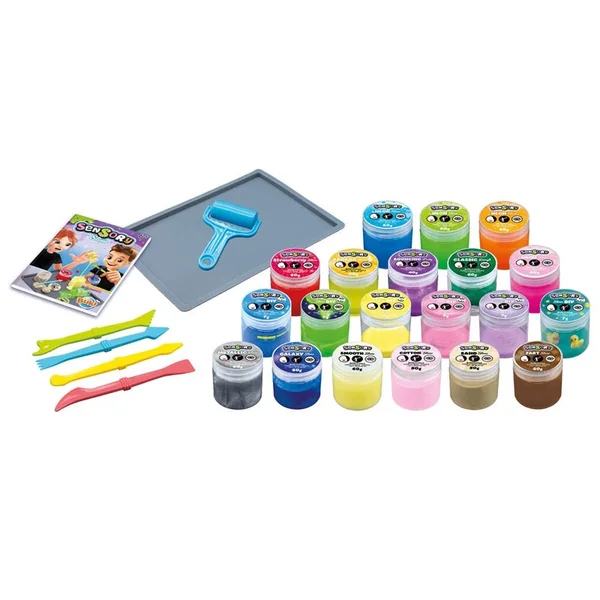 Avec le kit Sensory Slime, découvre et manipule 20 textures : slime, fluffly, cristal, pate rebondissante, effet galaxy… A l’aide des outils de modelage crée tes propres pâtes!