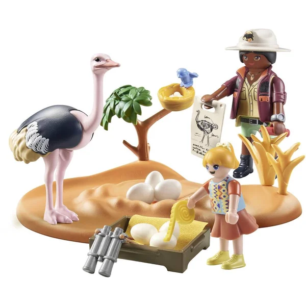 Contient deux personnages, une autruche ainsi que des œufs et des accessoires.
