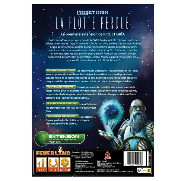 Nouvelles actions : envoyez vos nouvelles navettes vers les vaisseaux de la Flotte Perdue pour les explorer. Une fois à bord, vous profiterez de nouvelles actions, de nouvelles technologies et de nouveaux pions Alliance. Sans parler des mystérieux artefacts que l’un des vaisseaux abrite… Nouvelles planètes : les astéroïdes et les protoplanètes font leur entrée dans Projet Gaïa. Nouveaux secteurs : Les secteurs Espace profond et les tuiles Interespace viennent modifier le plateau !