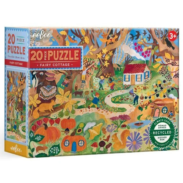 Les puzzles Eeboo sont faits à 90% de cartons recyclés, et imprimés avec des encres végétales pour un impact environnemental limité. Puzzle de 20 très grandes pièces, joliment illustré ! Taille du puzzle : 9×13 cm.