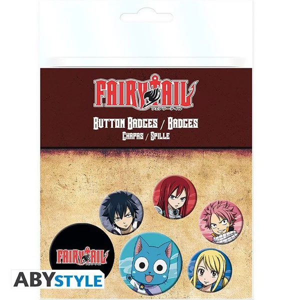 Rejoignez la guilde de Fairy Tail, et partez à l’aventure auprès de Natsu, Lucy, Erza, Grey et Happy avec ce pack de badges Fairy Tail par ABYstyle !