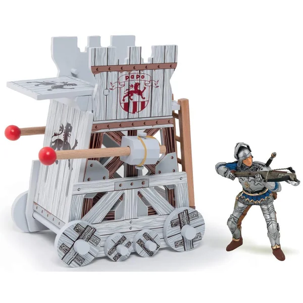 Plongez dans le Monde Médiéval de Papo avec la Tour d’assaut en bois de Papo.Inclus 1 arbalétrier. La jouabilité est toujours au centre des créations de PAPO. Conçue pour assiéger les châteaux, cette tour d’assaut est redoutable !Elle offrira des heures d’amusement grâce à ses 2 béliers avec élastique prêts à enfoncer les murailles et portes du château, son pont-levis, son échelle et ses roues mobiles!Elle pourra également protéger l’arbalétrier et lui offrir un effet de surprise ! Un jouet ludique pour s’amuser et imaginer d’incroyables histoires de l’époque médiévale.