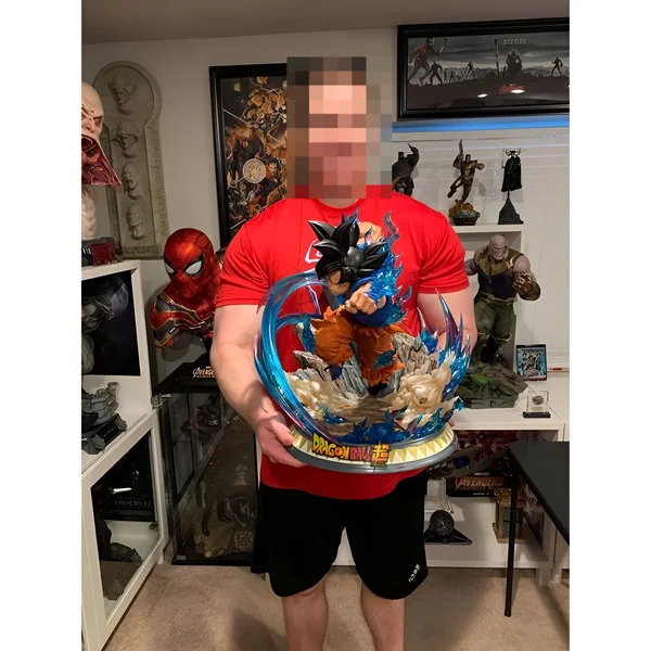 La fidélité au design original de Sangoku est au cœur de cette création. Chaque trait de son visage, de son regard déterminé à la forme de sa chevelure argentée, a été reproduit avec une précision remarquable. Le gi déchiré témoigne des combats acharnés qu’il a menés, une marque de son parcours de guerrier infatigable. On retrouve les cicatrices de bataille qui racontent son histoire, gravées comme des trophées de ses affrontements contre des adversaires redoutables. La pose, inspirée des moments clés de la saga Dragon Ball Super, est immédiatement reconnaissable par les fans. C’est un hommage au personnage iconique qui a marqué plusieurs générations.