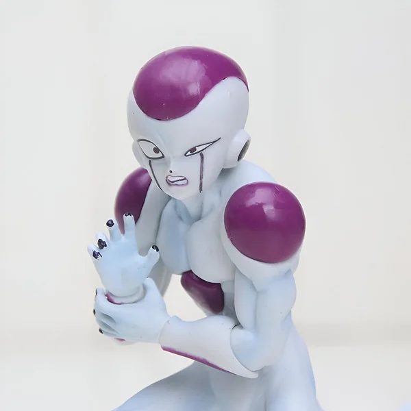 Le visage de Freezer, avec son expression froide et calculatrice, est particulièrement réussi. Les yeux, perçants et déterminés, sont typiques de sa personnalité tyrannique. Les détails des ombres et des traits font ressortir sa cruauté. La figurine nous ramène directement aux moments les plus intenses de la saga, lorsque Goku et ses amis affrontent ce terrible adversaire. Les collectionneurs apprécieront la précision de la sculpture et les détails soignés.
