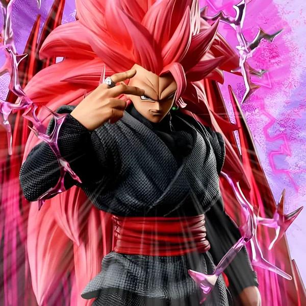 Cette figurine de Goku Rosé Saiyan 3 ne laisse personne indifférent. Sa posture, les yeux emplis de froideur et les détails de son costume noir et rouge témoignent d’une maîtrise parfaite des techniques de combat. Chaque aspect a été pensé pour reproduire fidèlement l’apparence du personnage tel qu’on le connaît dans la série. La chevelure rose, signe distinctif de cette forme, est rendue avec un réalisme impressionnant, donnant l’impression qu’elle vibre sous l’effet de la puissance. La figurine dégage une aura de force brute et de sophistication maléfique, faisant de cette représentation un objet de collection de premier ordre. Les lignes de son visage sont tracées avec précision, capturant son expression arrogante et menaçante.