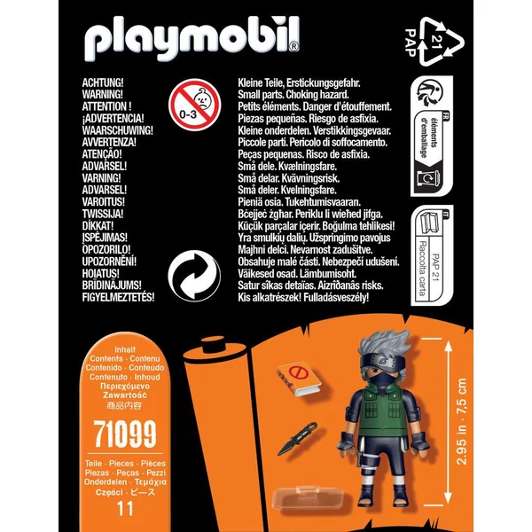 Figurine Playmobil® Kakashi sous licence Naruto Shippuden, mesure 7,5cm, avec accessoires. Kakashi est un ninja d’élite du village de Konoha. En tant que chef de l’équipe 7, composée à l’origine de Naruto Uzumaki, Sasuke Uchiwa, et Sakura Haruno, il est le premier mentor des principaux protagonistes de l’histoire.