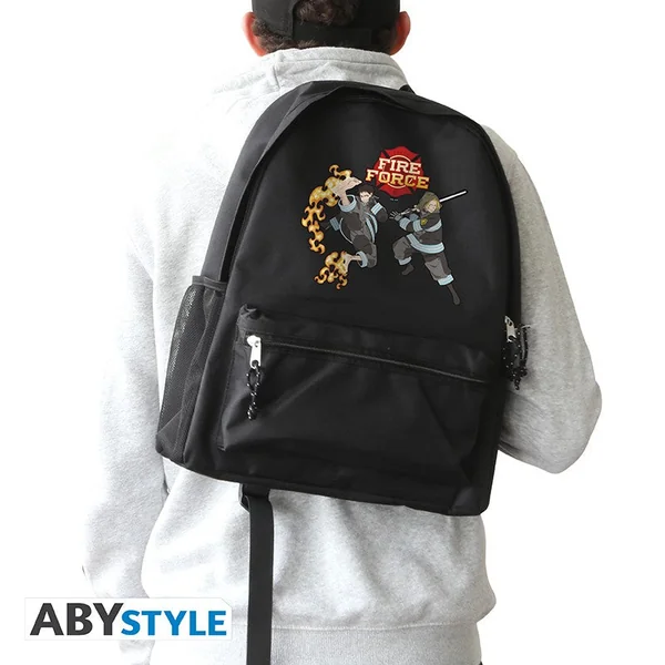 Shinra et Arthur sont peut-être ennemis d’enfance mais quand il s’agit d’éteindre des torches humaines, leur travail d’équipe est sans pareil ! Retrouvez le héros et le chevalier de la huitième brigade sur ce sac à dos Fire Force par ABYstyle.