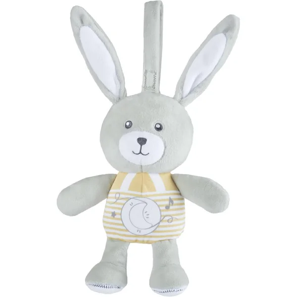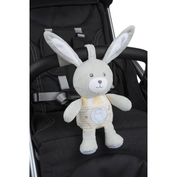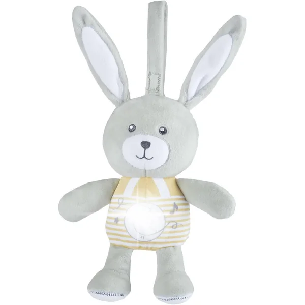 La veilleuse Lapin de Chicco n’est pas seulement le doudou idéal de votre bébé au moment du coucher, c’est aussi un compagnon de jeu doux à câliner. Cette peluche douce amuse et détend bébé grâce à ses effets lumineux et sonores. En appuyant sur son ventre, on active la lumière et les mélodies classiques pendant 15 minutes environ. Grâce à sa sangle très pratique, ce produit peut être fixé au lit ou à la poussette de votre enfant pour l’accompagner tout au long de la journée. La partie électronique de la peluche peut être retirée pour laver le produit en machine et donner à l’enfant un jouet toujours propre et sain.