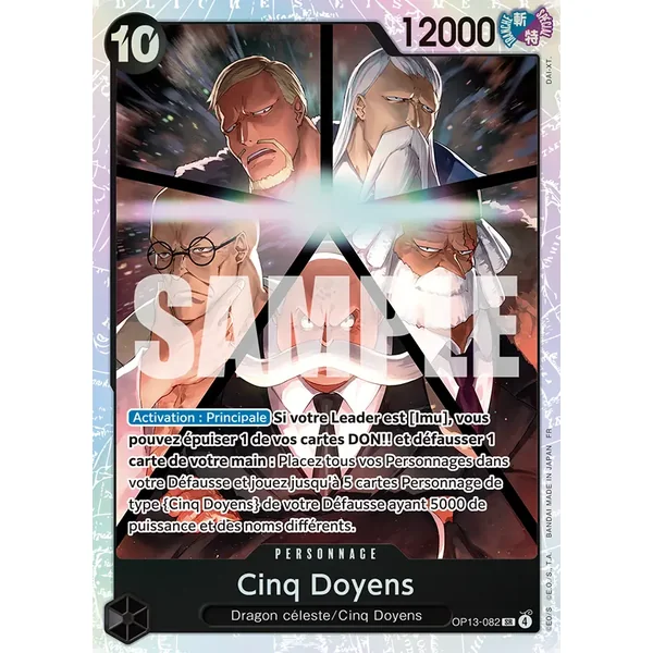 Découvrez Five Elders (op13082), une carte Super Rare de l’extension Successeurs. Idéale pour compléter votre collection, cette carte Super Rare plaira autant aux collectionneurs qu’aux joueurs.