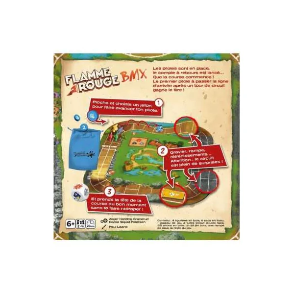 Découvrez le jeu Flamme rouge BMX de Gigamic, un jeu de course passionnant pour jouer en famille de 2 à 4 joueurs à partir de 6 ans. Une version familiale du célèbre jeu « Flamme Rouge » dans une course nerveuse facile à jouer.