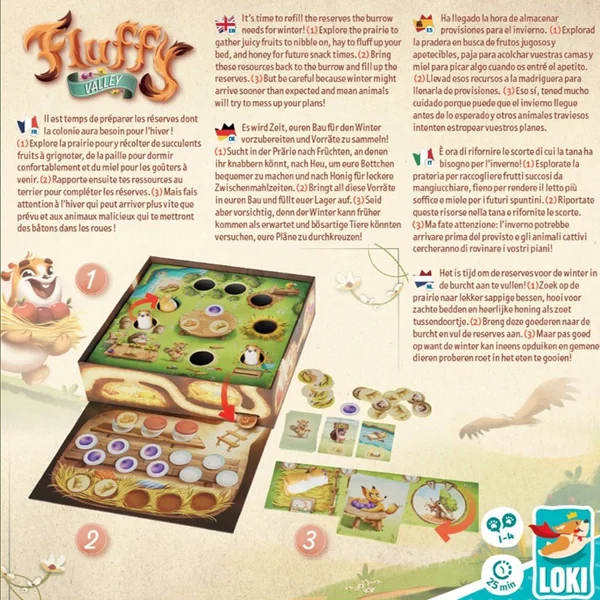 Explore la prairie pour y récolter de succulents fruits à grignoter, de la paille pour dormir confortablement et du miel pour les goûters à venir. Rapporte ensuite tes ressources au terrier pour compléter les réserves. Mais fais attention à l’hiver qui peut arriver plusvite que prévu et aux animaux malicieux qui te mettront des bâtons dans les roues…