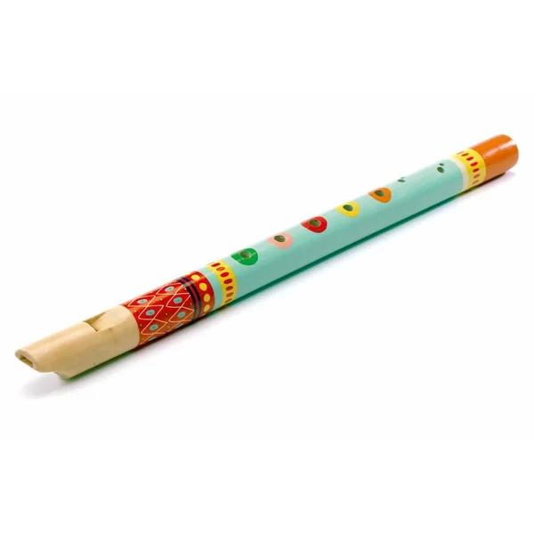 Une magnifique flûte en bois peint pour les petits musiciens en herbe. Idéal pour stimuler l’oreille musicale. Diamètre : 2 cm.